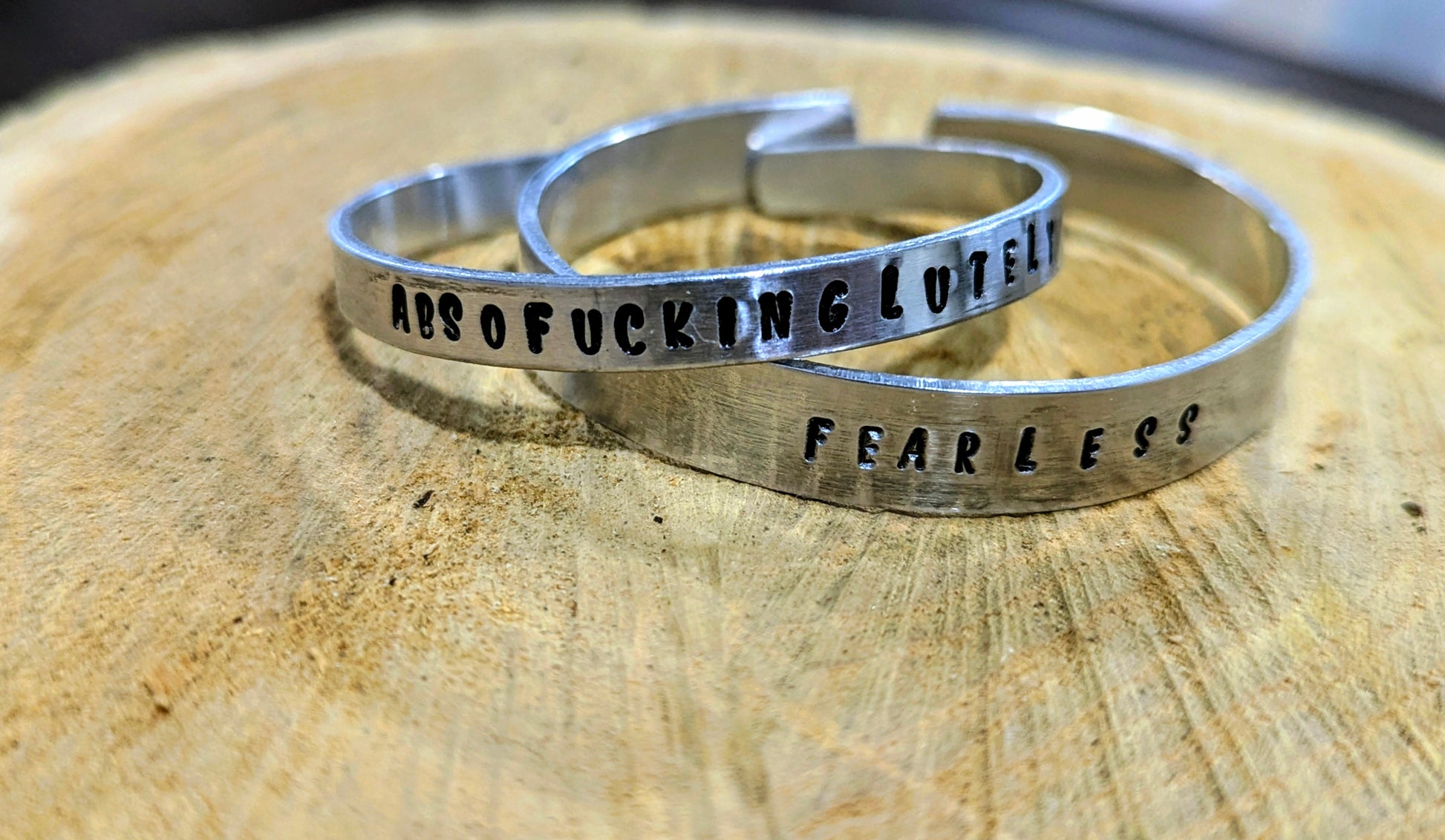 These are hand stamped, so letters may not be perfectly aligned, may appear deeper unevenly spaced, etc. which add to the charm of these handmade pieces